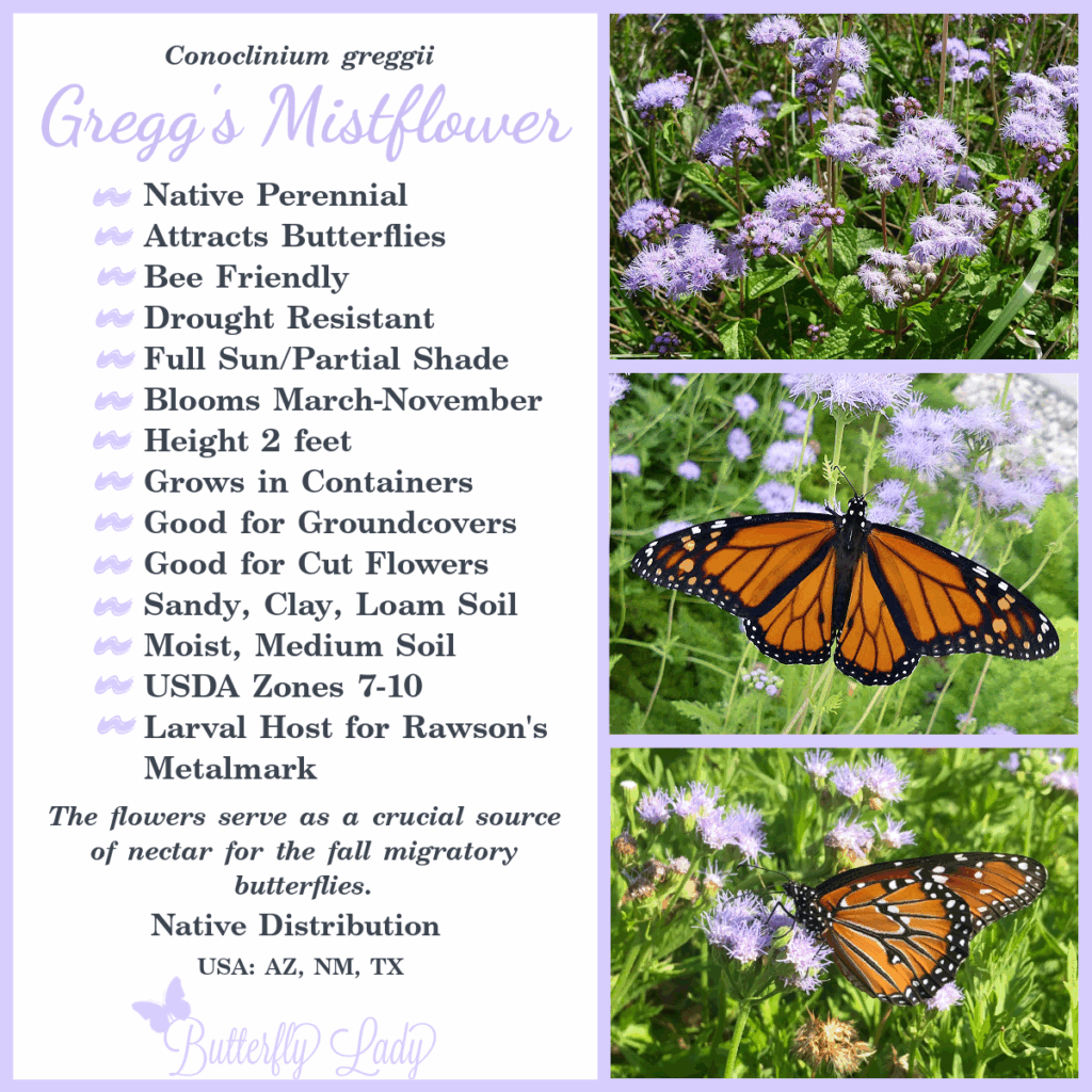 Plant Gregg’s mistflower in you garden if you want to attract Queen butterflies (and monarchs)!